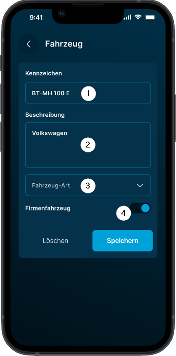 - Toggle für Firmenfahrzeug ❹