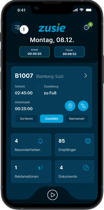 - GPS-Tracking während der Zustellung aktivieren/deaktivieren ❶