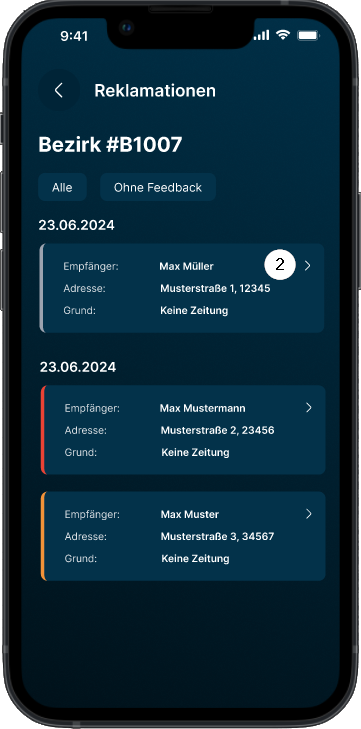 Alle Reklamationen für den Bezirk werden angezeigt.